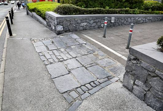 The first, in fact, is still retained on the footpath at the old entrance to the former County Infirmary, which closed in 1924, before the building was expanded into the County Buildings of today. Thankfully, a thin section of the former irregular limestone paving slabs, were left in situ, in front of the former gateway now surrounded by the concrete paving of today. One can only wonder at the number and type of horse-drawn ‘ambulances’ of other days which passed over these irregular sized limestone slabs.