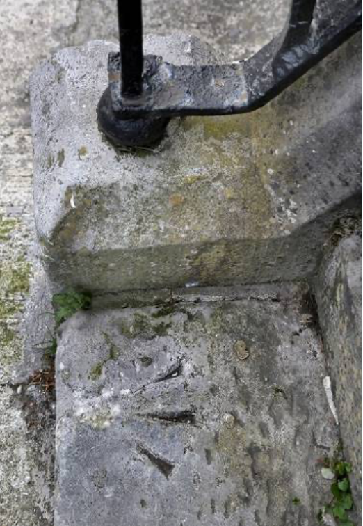 Up to recent times, two original iron boot scrapers were still in situ, at the actual entrance on top of the steps. Time, however, has taken its toll, and the one on the right has fallen prey to the demon rust! Thankfully, the left-hand one is still intact, although the actual cleaning plate has given way to rust also.