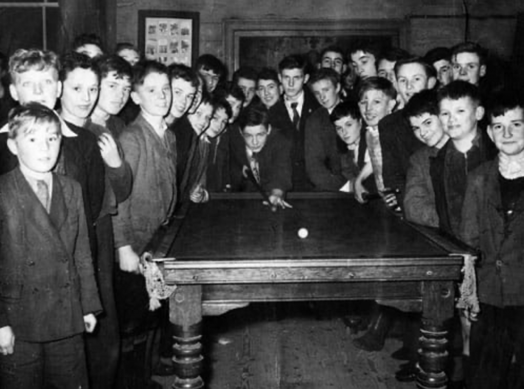 Our Lady’s Boys Club about 1955. This group of youngsters are happy playing billiards. The photograph includes: Paddy O’Connell, Dominick Curran, Seanie Flaherty, Joe Walsh, Tommy Gannon, Des Fitzpatrick, Michael Burke, Tom Cunningham, Bartley Hynes, Tony Conboy, Gerry McNamara, Gerry Ryan, Willie Golding, Colie Rushe, William McDonagh, Peter Folan, Leo Crean, Francis Walsh, Danny Collins, Jackie Molloy, Dominick Geary and Paddy McDonagh