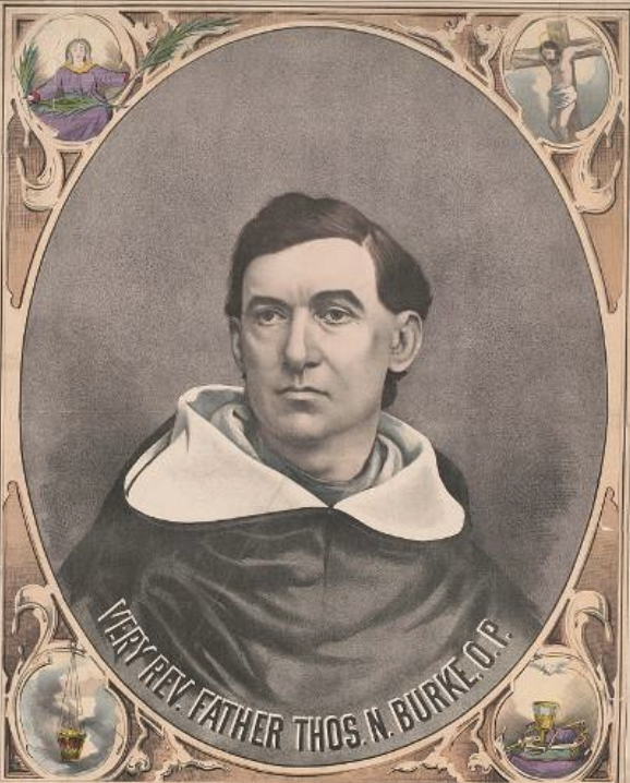 Fr Tom Burke was a noted lecturer and preacher during the nineteenth century. He was the only son of Walter Burke, a baker. While some sources claim that he was born in Kirwan’s Lane on 8 September 1830, others mention Dominick Street. During a Dublin lecture delivered by Fr Jarlath Hynes in 1913, he stated that Tom Burke was ‘Born in a house near the bridge at Dominick Street, now a police barracks’ (This would indicate An Tobar Nua). However, others say it was across the road in a house facing onto the canal. Nevertheless, as a child growing up on the street, he was full of mischief and loved playing pranks on people. He was also impersonating people in the area and would mimic Michael Walsh, the Nailor. He derived great fun out of this, being chased around the street.