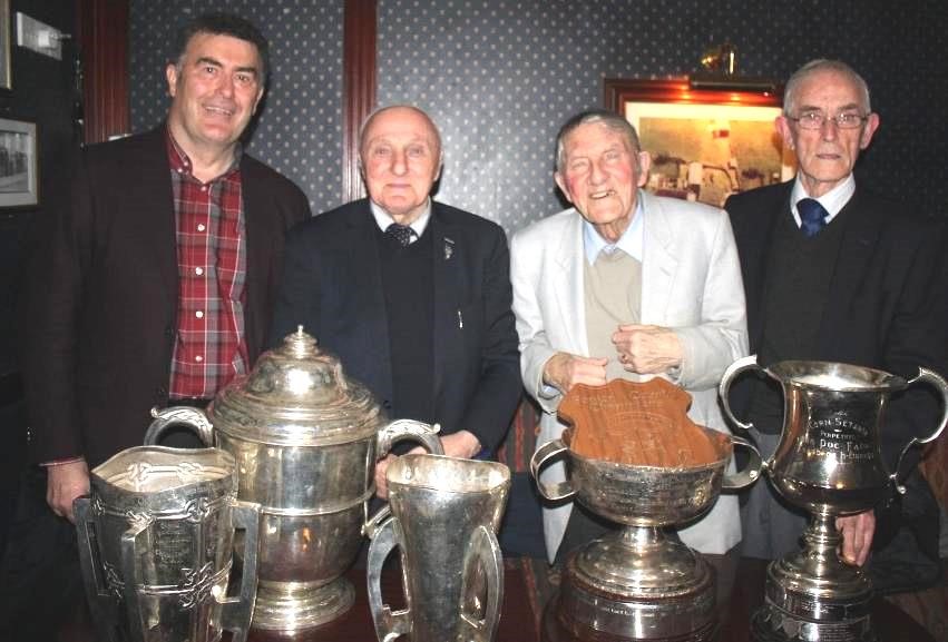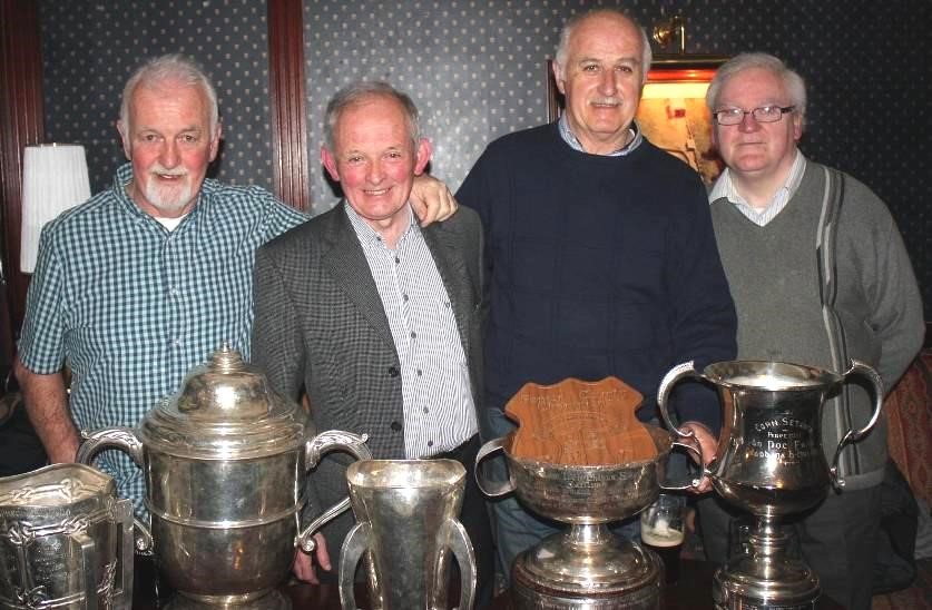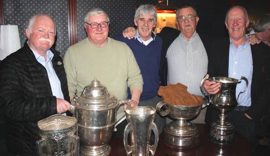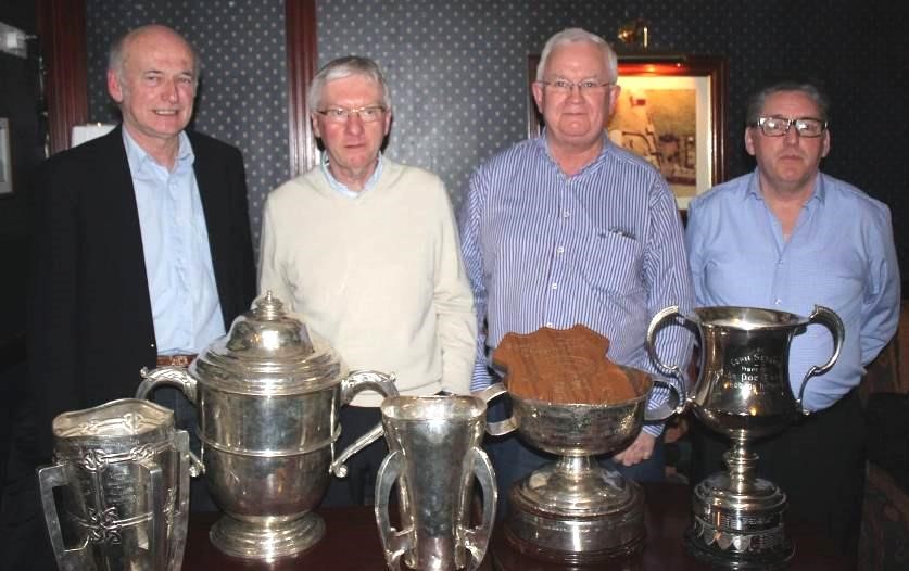 From the left: Joe Connolly, Jimmy Duggan, Mick O’Sullivan,Pat Houlihan 1 Liam McCarthy Cup – 2 Leinster Cup – 3 National Hurling League Cup – 4 Walsh Cup – 5: Poc Fada Cup – 6: Shield: County Hurling Championship