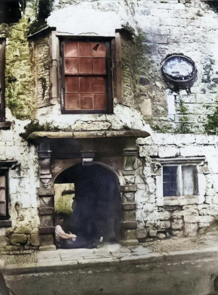 However, the house survived but had fallen into ruin by the nineteenth century. There were a number of carved stones, including a spandrel on the left containing the French coat of arms and another on the right with the Browne coat of arms. The decoration on the frieze was damaged because of the insertion of the Burke arms. This carving possibly accounts for the house being called ‘De Burgo’s Mansion’. Despite this magnificent doorway’s great importance, it was lost to development in the early twentieth century. One wonders about its whereabouts? The photograph was taken in 1908 by Lilian Bland, a keen photographer who took a series of images during her visit to Galway. She was an Anglo-Irish journalist and pioneer aviator. She is believed to have been the first woman in the world to design, build, and fly an aircraft.
