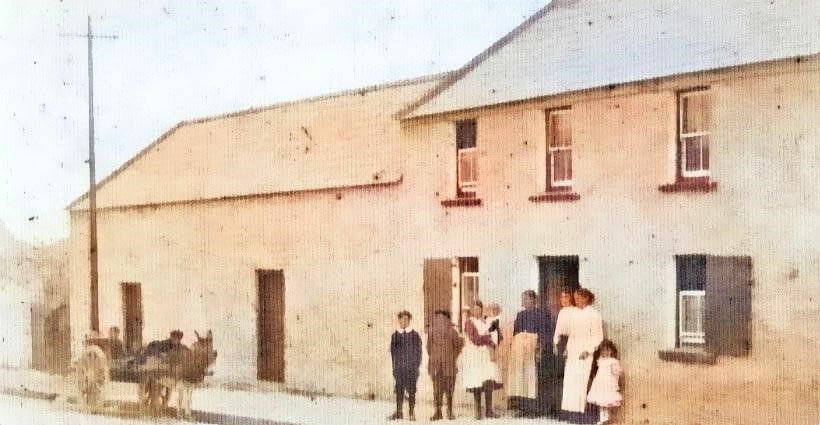 Staying on the same side of the road, beyond Crowe’s Lane there was a long low thatched house with very small windows. This was far from our idea of a traditional shop, but many local people bought their cabbage carrots and clay covered spuds there. The spuds and veggies were probably grown in their long back garden. Bohermore was organically fed before the world ever knew the meaning of the word. It was owned by the Hogan Family. Michael John, Morgan ‘Gawgs’; and their sister Bridgeen handled the money.