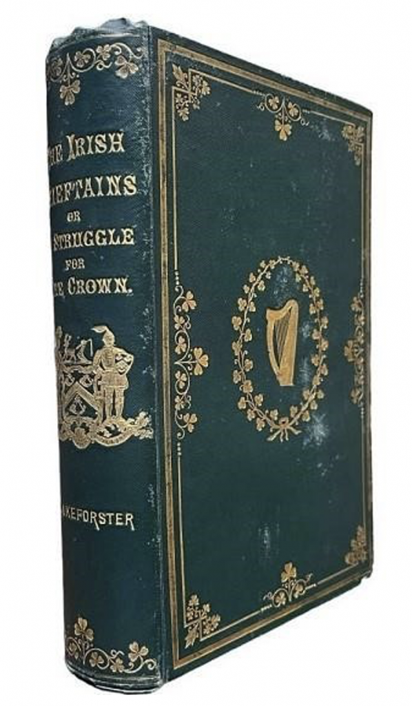 Between 1869 and 1871, he contributed a number of historical articles to The Galway Vindicator and The Galway Express newspapers, which were very well received. It was said that his essay on Kilfenora bears testament to his ‘sterling patriotism’ and dedication to Irish history. He quickly gained a vast knowledge of history, which can be seen from his book The Irish Chieftains or A Struggle for the Crown (published 1872 McGlashran & Gill). The book is a historical study of South Galway and North Clare; and included an account of the Williamite–Jacobite War (1689-1691) in Ireland from a Galway perspective. While it is described as a novel, it is without doubt an astonishing account of real events and individuals mixed with stories from other centuries. Even the notes and appendices which accompany this manuscript are a volume of work alone; and are astonishingly detailed. According to a relative, this work caused problems for him among the leading aristocratic families of the day, and he was expelled from the County Clubs of Ennis and Galway. This was because he had expressed his nationalist opinions in the book. The binding of the manuscript was also decorated with an uncrowned harp, which they found offensive. This is a hugely important work and is a treasure for anyone who might have a copy in their library.