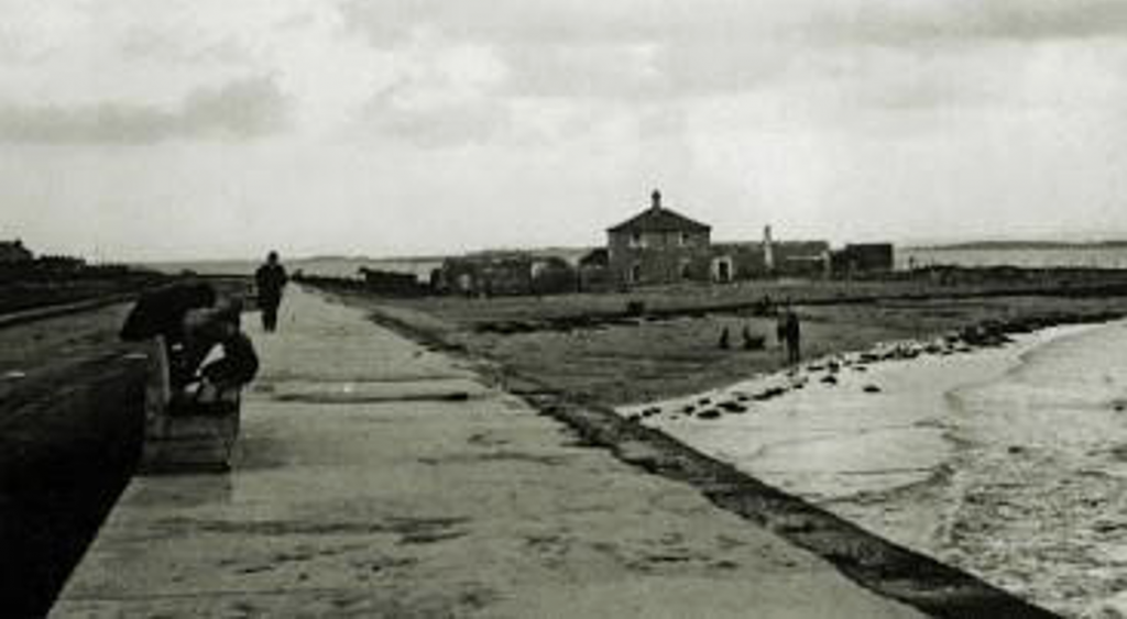 The house was built on Grattan Road Beach. Some people referred to it as Moon Lodge or Sand House for obvious reasons. Different families and individuals lived in the house over the years. One man who lived there for a time was Jack Ward; he later moved to Shantalla and eventually lived in Corrib Park. It seems that there is a vegetable garden beside the house. The end came for the house as a dwelling on Saturday, 16 September 1961, when ‘Hurricane Debbie’ paid her unwelcome visit to the city. The house was destroyed by the hurricane floodwaters, and the family had to seek shelter with friends or neighbours. The building quickly became derelict. The Red Cross (Galway) subsequently used the building for training. However, the building became a victim of neglect, weather and the power of the sea, and eventually it disappeared.
